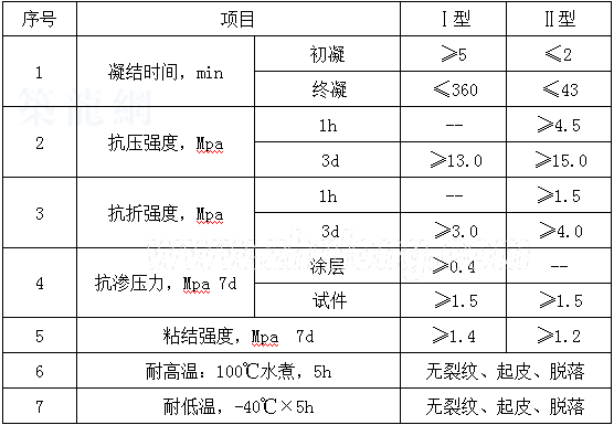 (1)快速凝固、瞬间止水,早期强度高,具有微膨胀性能。