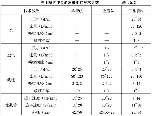 旋喷钻机转速度10-20r/min提升速度8-25cm/min,高压液流管道输送距离不宜大于50m,分段提升喷射搭接长度不得小于100mm。