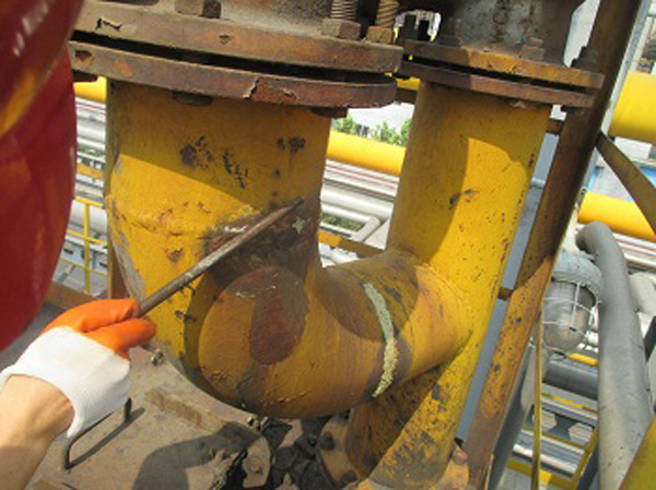 1、表面处理:针对渗漏点以及周围30mm以内进行漆面打磨,可利用锉刀、锯条、铜刷、砂纸等工具进行,要求尽量处理到金属原色,不能有油漆、浮锈等附着物;