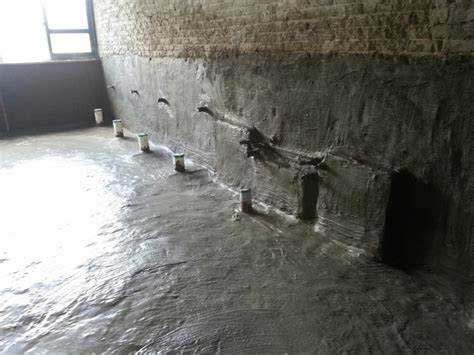 E.灌浆:堵漏材料的防水砂浆达到一定强度后,从灌浆管注入水泥浆;根据附近相应注浆管流出的浆液来判断注浆效果,力求浆液充满缝隙并均匀分布;灌浆压力控制在0.3-0.4兆帕,一般通过现场试验确定。灌浆完成后,应使用铁丝紧固灌浆喷嘴,以防止浆液流出;灌浆硬化后,切断灌浆管。