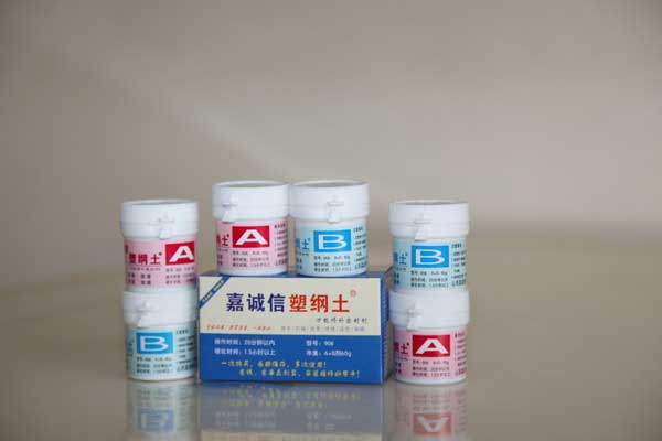 塑钢土是剂状的高科技万能修补材料,别名: AB胶、ab塑钢土、金刚石粘土。 是特殊的可塑性材料,由a、b两种混合使用的糊状可塑性材料构成。 该产品用于管道点滴泄漏、采暖漏水、水箱、水箱、空调泄漏、车身钣金、船舶修理、反应釜、铸件及各种硬质品的维修。