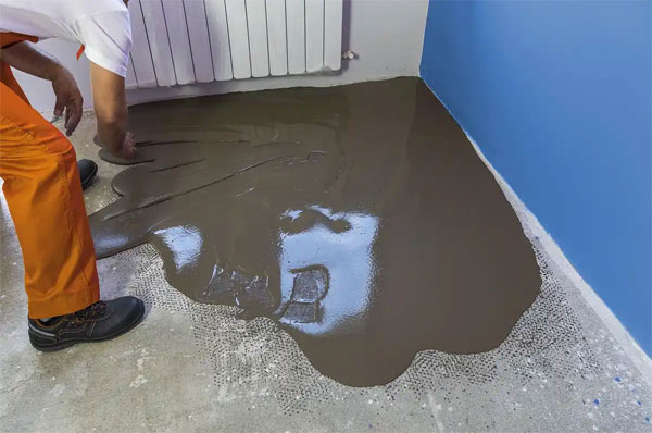 涂刷基层处理剂:在处理好的基层上,用长柄滚刷将基层处理剂均匀地涂刷在基层表面,不能漏刷或露底。涂刷后须8h以上达到干燥程度,方可施工,以防失火。