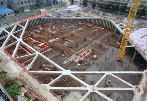 1、在底板钢筋绑扎前,先向集水井内填200mm厚30—50mm石子,然后埋设3.5m长Φ325的钢管,钢管下部1000mm制成花管(留设间距为40mm、Φ15mm空洞),钢管上部焊接两道止水环。