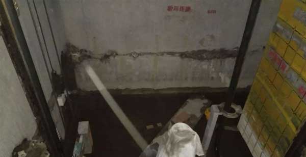 3、电梯井侧壁内外均未做防水处理,造成地下水从井壁外墙渗透进壁内而造成电梯井积水。